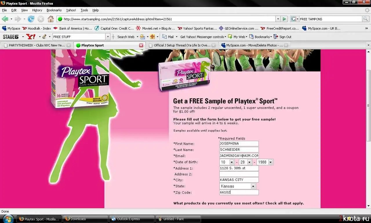 Специально для Джозефа - пробники тампонов для спортивных девушек!