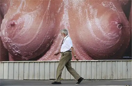 В Словении сделали то, что давно хотели сделать многие рекламисты. Как раз на уровне глаз прохожих, размещен стандартного размера биллборд 3*6 с крупным изображением женской груди, покрытой мыльной пеной и мурашками. Маленькими буквами в нижнем правом углу помещена надпись о том, что данное изображение является рекламой 28-ой Биеннале графического искусства, которая проходит в Словении 4 сентября — 25 октября 2009 года.