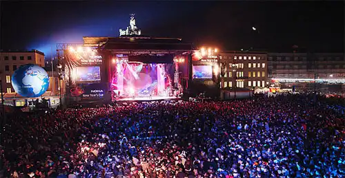 Несмотря на то, что в Берлине будет около нуля градусов, жители Берлина все равно выйдут на улицу, чтобы встретить Новый Год под открытым небом. Горожане уверяют, что именно в Берлине проходит самая массовая встреча Нового года в мире. Каждый год около миллиона человек собираются между Колонн Победы и Бранденбургских ворот. Красочные лазеры освещают небо, а звуковое сопровождение (по большей части рев поп-звезд) обеспечивают мощнейшие колонки, установленные по всему городу. Конечно, немцы законопослушны и поджигают фейерверки исключительно в отведенных для этого местах и под присмотром полицейских, но и они любят пошутить. Поэтому не удивляйтесь, если вы купите пончик с желе, а там окажется горчица.
