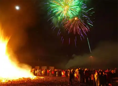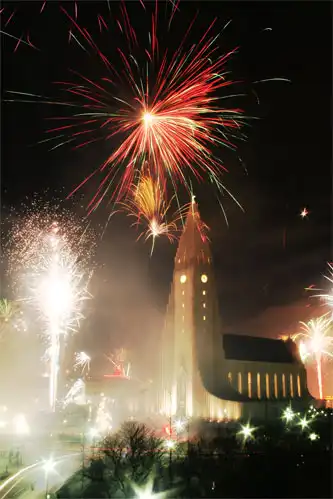Исландский закон позволяет запускать фейерверки абсолютно всем, поэтому ночь в Рейкьявике превращается в сплошную артиллерийскую канонаду. Эльфы, тролли, гномы и другие костюмированные существа исполняют танцы вокруг костров в 11-ти точках по всему городу. Стоит отметить, что в новогоднюю ночь все бары Рейкьявика открываются сразу после полуночи.