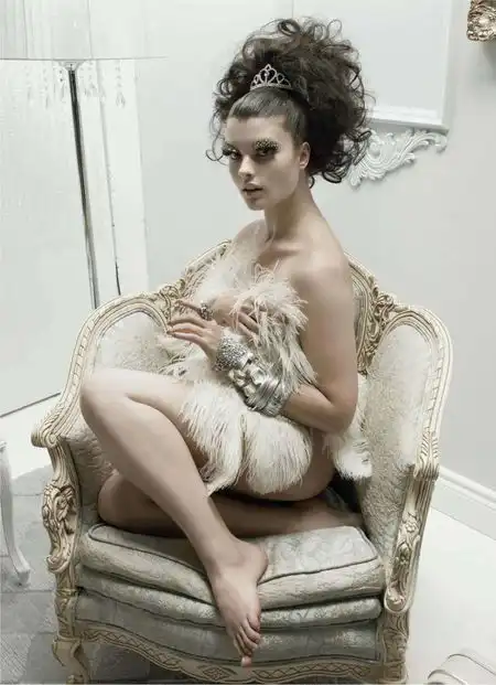 Фотограф Терри Ричардсон. Модели Жаклин Яблонски и Кристалл Ренн в идентичных гламурных нарядах. Рост обеих девушек – 175 см. Жаклин носит “модельный” 36-38 размер одежды (4 британский), а Кристалл – 48 (16 британский).