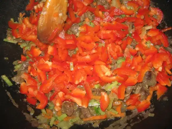 Немного добавляем кипяток, варим до желаемой готовности: в зависимости от того, хотите ли вы получить хрустящие овощи или нет. А так же, как говорилось выше, вы можете приготовить густую подливу или сделать её пожиже, добавив кипяток. Подсаливаем.