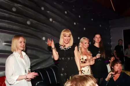 Стоит ли говорить, что с таким столом любое море по колено – как оказалось Алёна Лоран не только скандально ведет свое интернет шоу, но еще и поет. Что и не постеснялась продемонстрировать друзьям и журналистам – вместе с Терезой Франк Алёна исполнила песню «Господин». По всей видимости, этот перформанс был благодарностью самому щедрому из гостей, подарившему молодой звезде денежную сумму для приобретения квартиры.