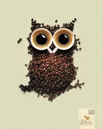 Индийское рекламное агентство JWT Mumbai разработало рекламный постер для бомбейской кофейни Beans & Beyond. Простая и запоминающаяся идея – кофе должен быть очень крепким и очень черным для бодрого духа и зоркого, как у совы, ока.