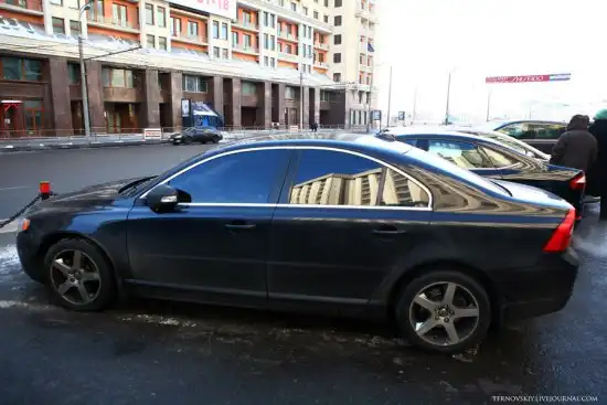 Только припарковавшись на Тверской, сразу встретили наглухо тонированный автомобиль с пропуском прокуратуры г. Москвы.