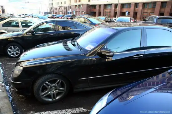 Заходим на парковку Государственной думы. Обязательно фотографируем государственный номер автомобиля. Мерседес Бенц, гн М431МР 77