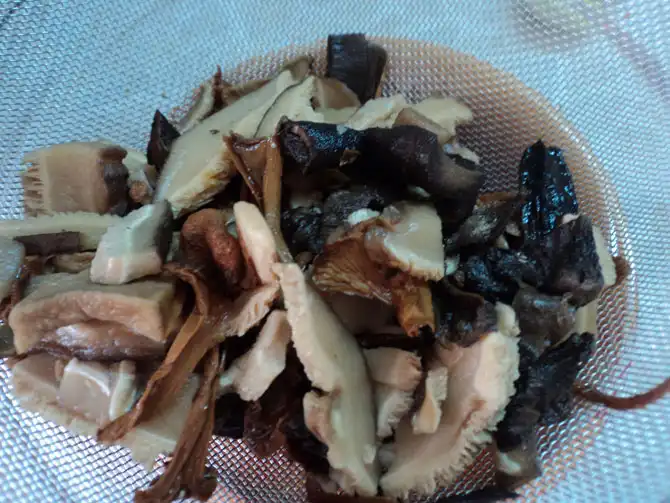 В положенное время грибы отбрасываем на дуршлаг. Отвар нам еще пригодится.