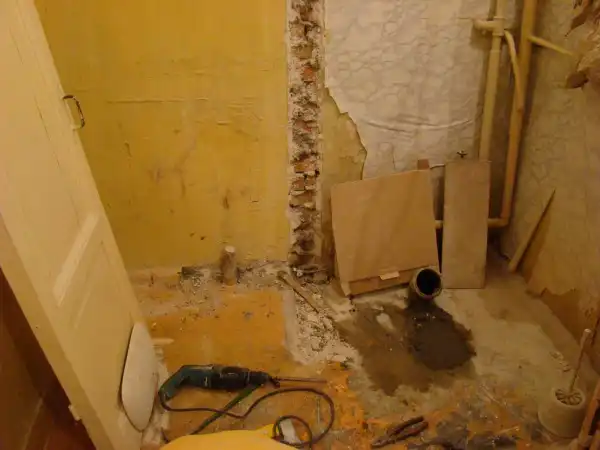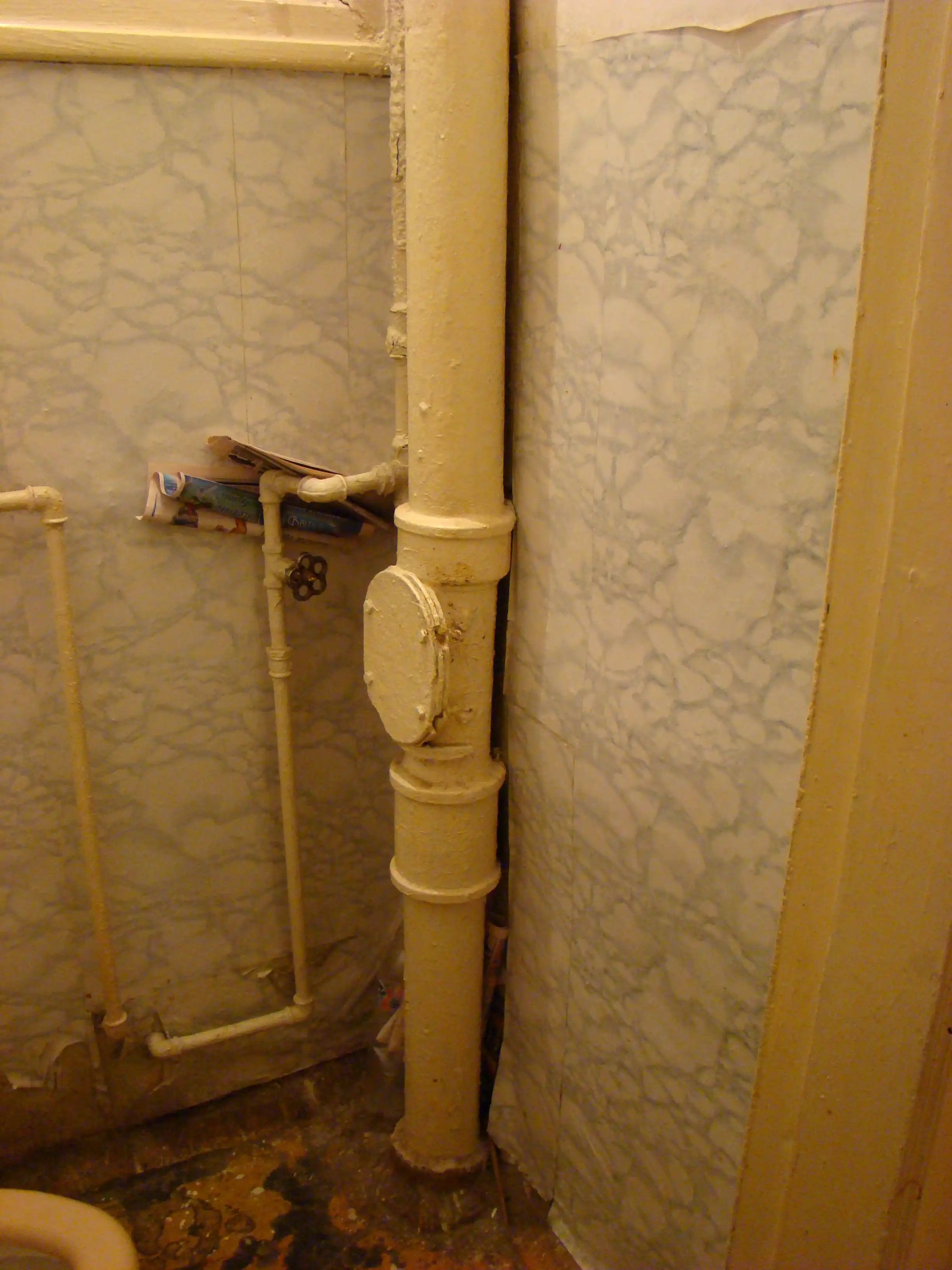 решили совместить санузел и ванну. дом годов 40-х, ванна находилась на кухне