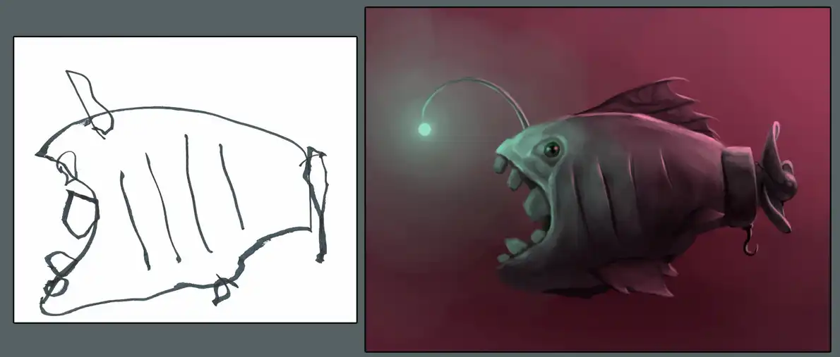Просто вот изображение перед рыбкой светилось в посте с названием что т тип "переработка детских рисунков дизайнерами"