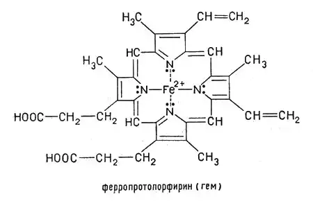 Ферропротопорфирин - называется гемом. Гем входит в состав гемоглобина.