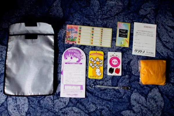 Внутри лежали вот эти вещи. Первая - скорее всего днище для рюкзака. Вторая - длинный чехол опять же непонятно пока для чего (может быть, пенал?). Затем крошечный кошелечек для монеток, внутри крохотулечные отделения с застежками, такое мимими что вообще. Четвертая - папка на липучке