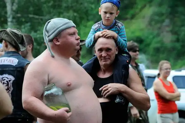 Красноярск, 2011 - Ежегодный фестиваль байкеров Сибири.Расчесать блондинку, одеть арбуз на голову... Вот так вот байкеры развлекаются ))