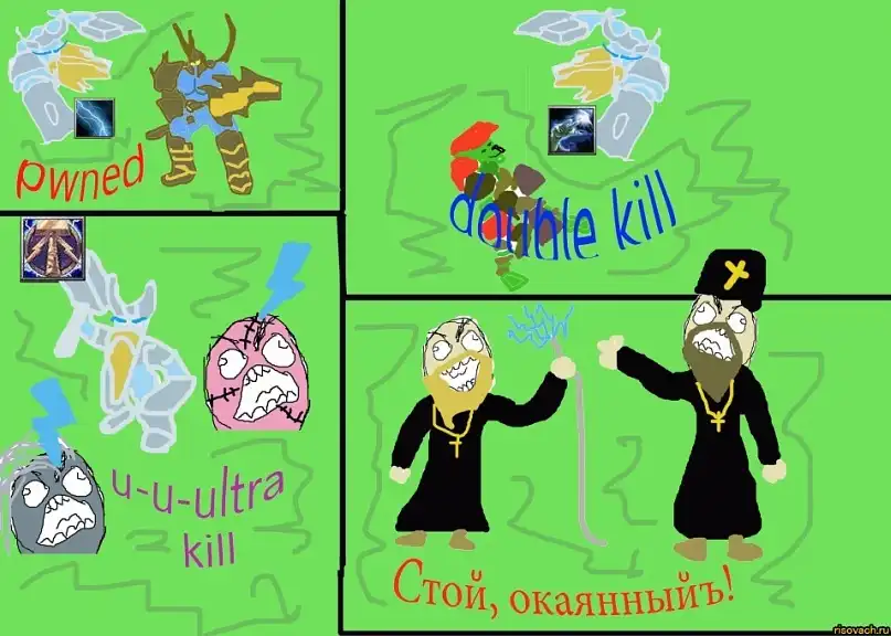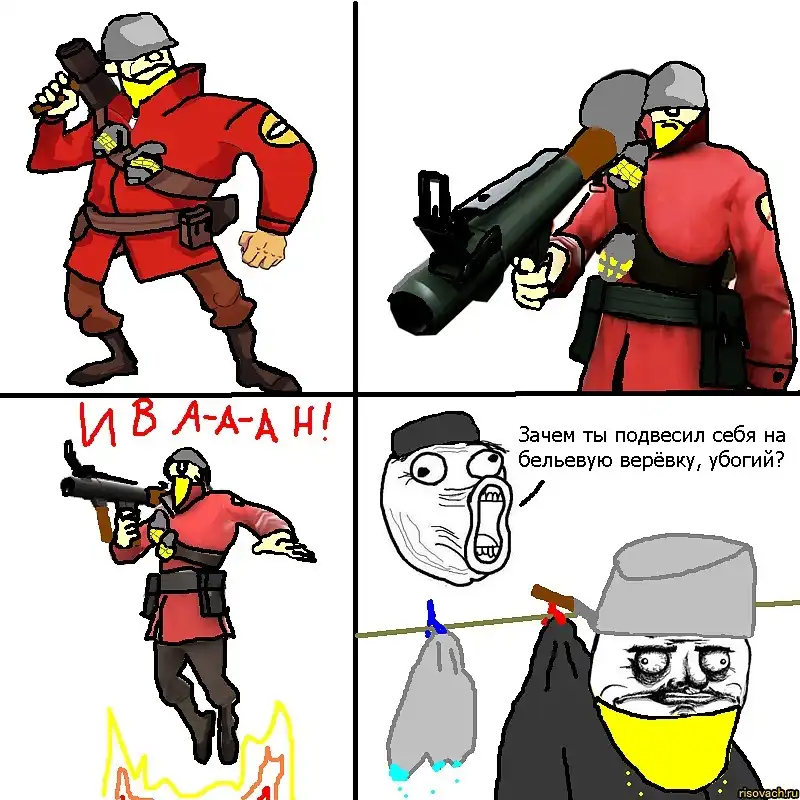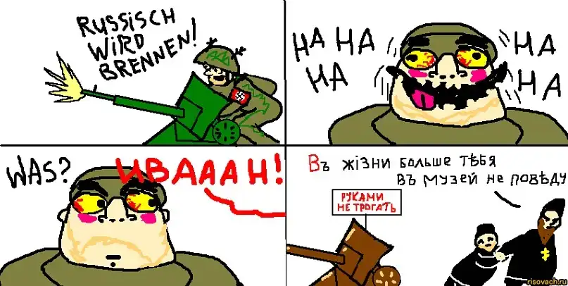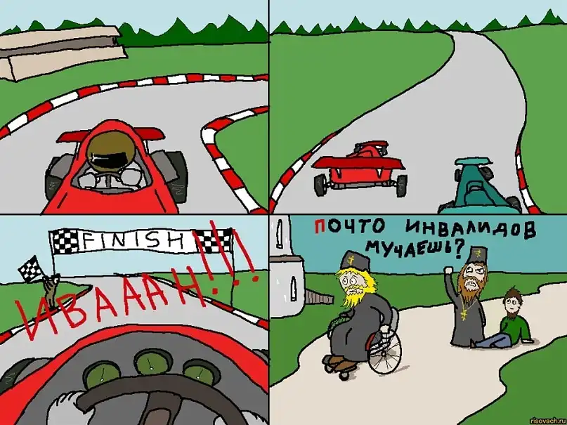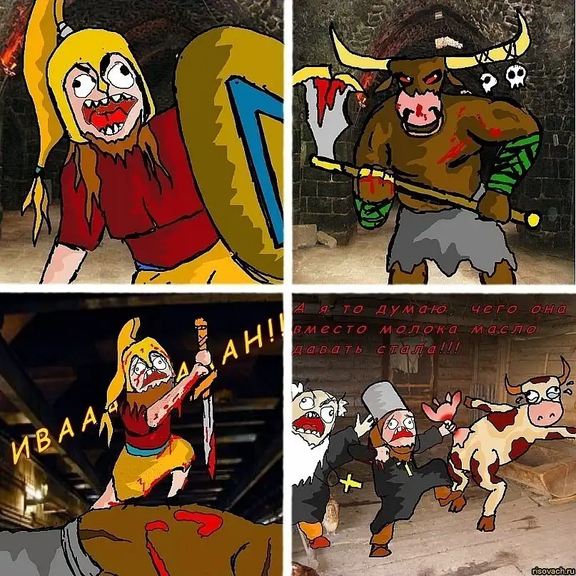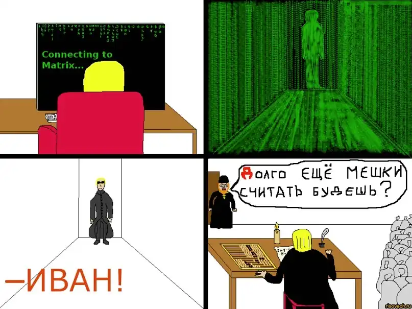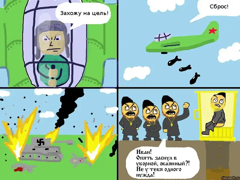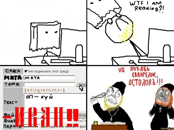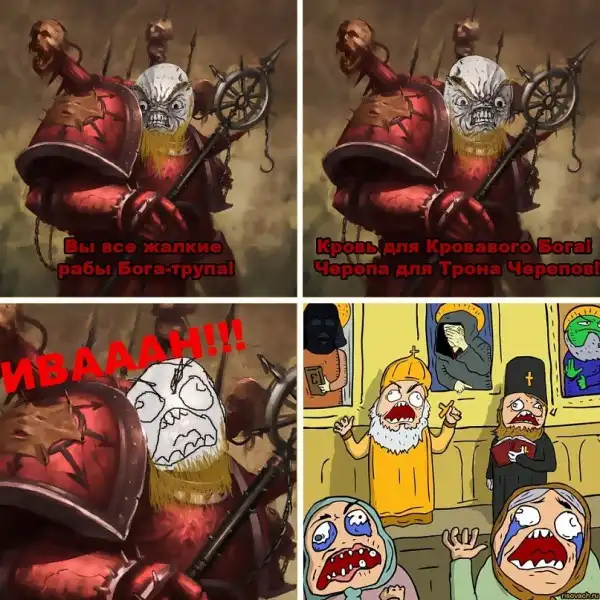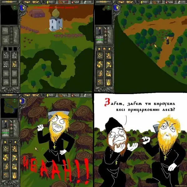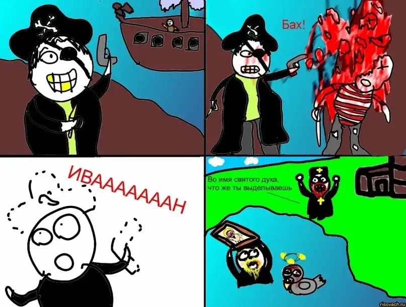 Иван! — послушник, который постоянно фантазирует и представляет себя в роли героев кинофильмов или компьютерных игр (в общем, как ребенок). В предпоследней панели обычно произносится сакраментальное заклинание «ИВА-А-АНЪ», возвращающее его в реальность.