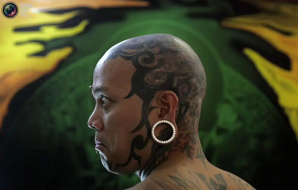 Этот снимок был сделан во время Сингапурского Тату-шоу 9 января 2009 года. Данное мероприятие было первым мероприятием подобного плана, которое прошло в городе-государстве. На это 3-дневное шоу съехались мастера из Азии, США, Канады и в Европы.