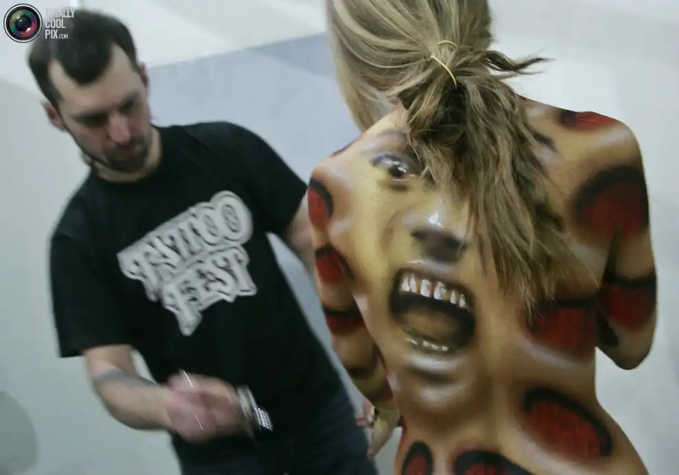 Состязания мастеров боди-арта во время 3-го украинского открытого Чемпионата Тату и Пирсинга в Киеве, 9 февраля 2007 года.