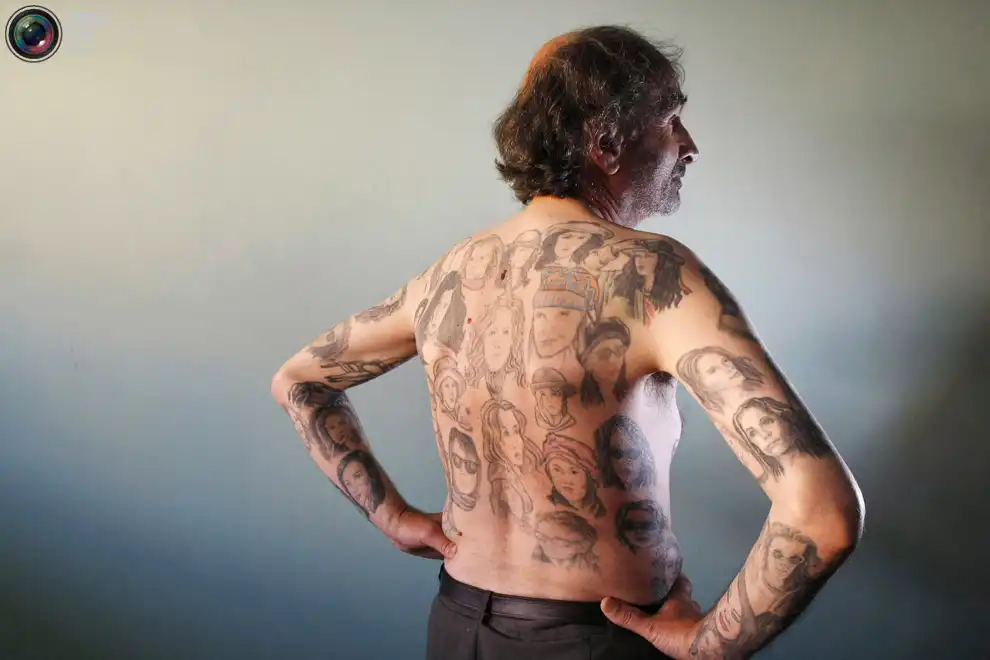 Миленко Пашершаш Букович демонстрирует фотографам портреты актрисы Джулии Робертс во время фото-съемки в Вальпараисо 9 марта 2011 года. 56-летний Букович начал делать делать татуировки с изображением актрисы после просмотра фильма с ее участием - "Эрин Брокович". На сегодня их уже 82. Букович продает газеты, и уже потратил миллион песо ($ 2500) на тату. Он намерен продолжать пополнять свою коллекцию "до тех пор, пока есть место на теле и деньги".
