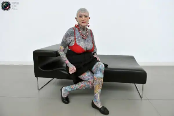 Изабель Варлей, имеющая официальный титул самой татуированной женщины в мире, демонстрирует свои татуировки в Гиджоне, северная Испания, 15 мая 2009 года.