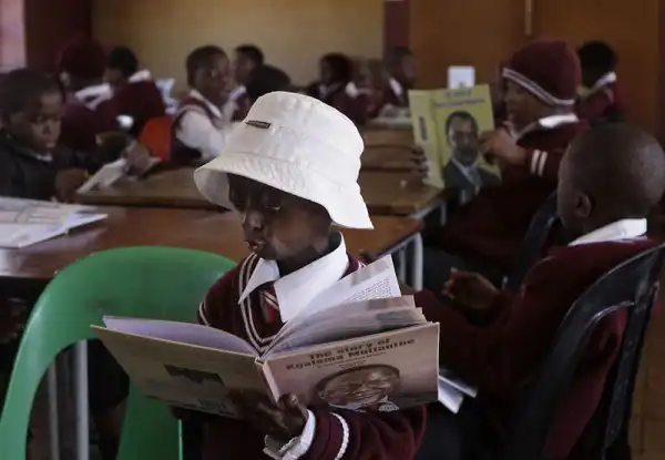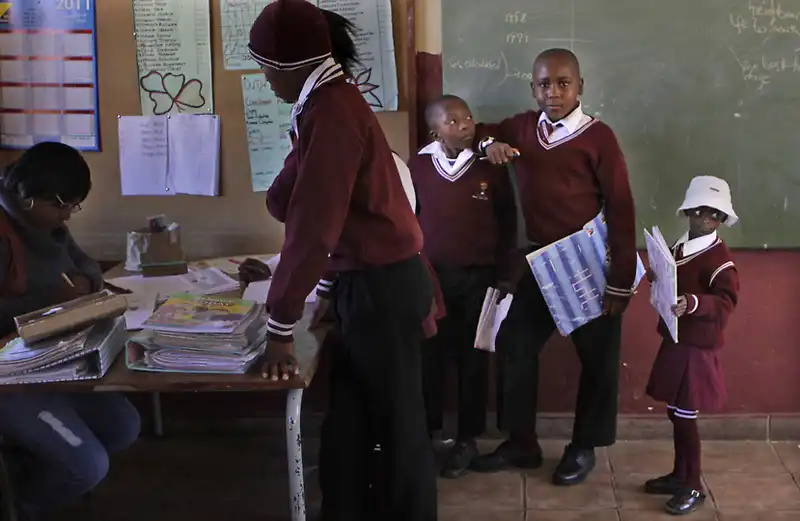Онтламетсе Фалатсе пытается сосредоточиться во время урока математики.