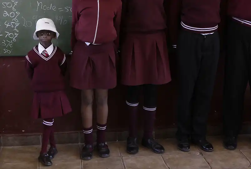 12-летняя Онтламетсе Фалатсе читает в классе на уроке чтения в начальной школе Лорато в Хевроне, ЮАР. Стареющая Фалатсе в два раза меньше своих сверстников, но в то же время выглядит в гораздо старше них. Дважды в год Фалатсе летает в Исследовательский центр синдрома Гетчинсона-Гилфорда в Бостоне, где ученые пытаются найти лекарство против ее заболевания.