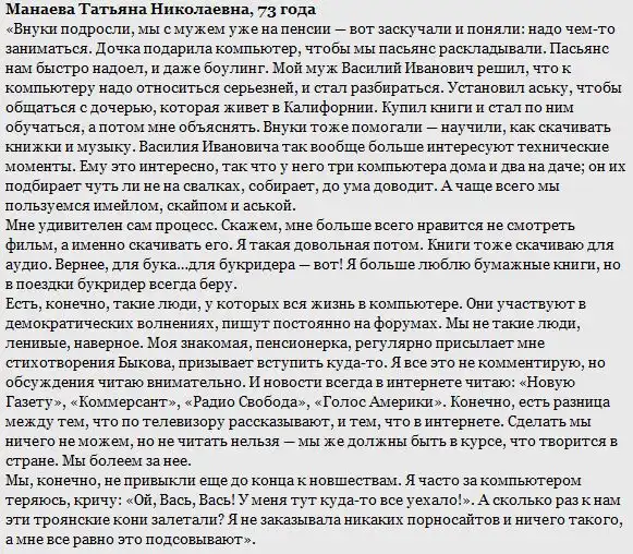 Сегодня я хочу вам показать интервью людей, которым было за 60, когда появилось все выше перечисленное.