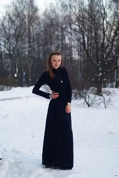 хипстерша *башыт концептуальный лук: если ее перевернуть, то получится мягкий знак, заблудившийся зимой в лесу