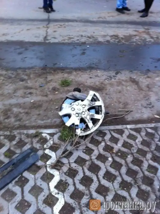 Он пролетел стоянку, протаранил автомобиль ВАЗ, а затем проломил стену.