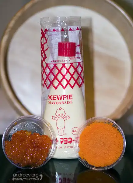 Японский майонез. Произвольный компонент. В основном используется в приготовлении толстых футо-маки суши. На вкус менее резкий и более сладкий, чем обычный майонез.