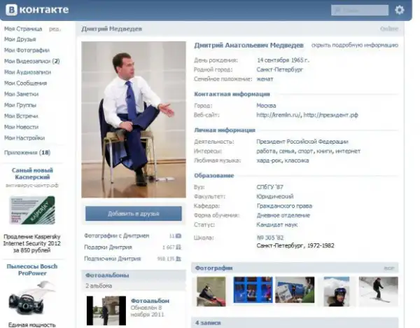 ПОДАРКИ МЕДВЕДЕВУ ВКОНТАКТЕ