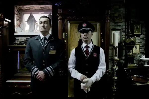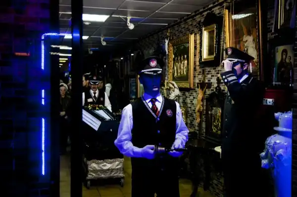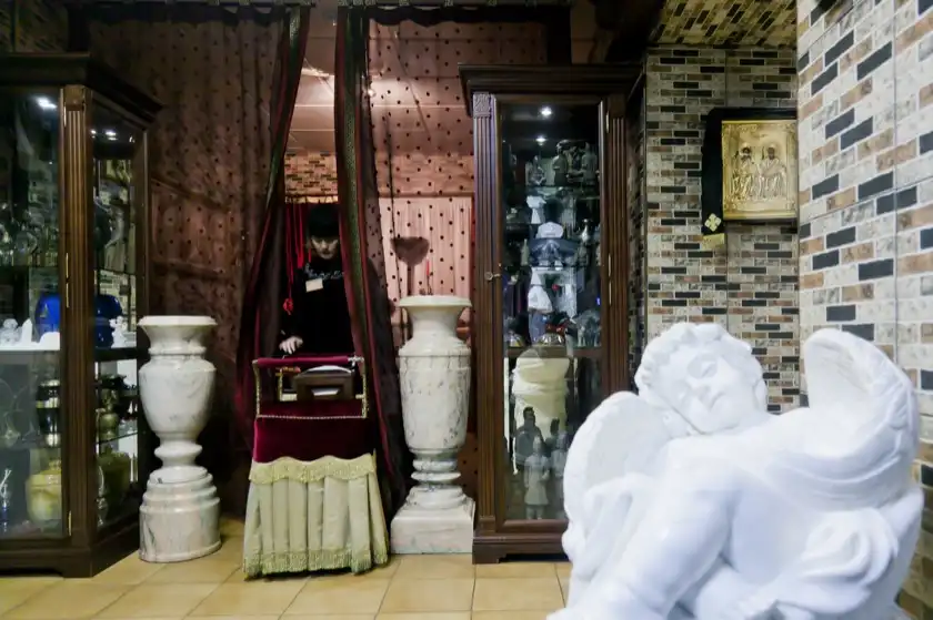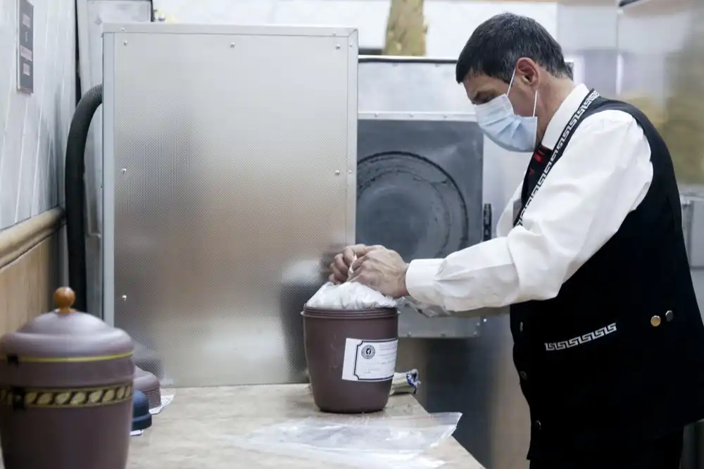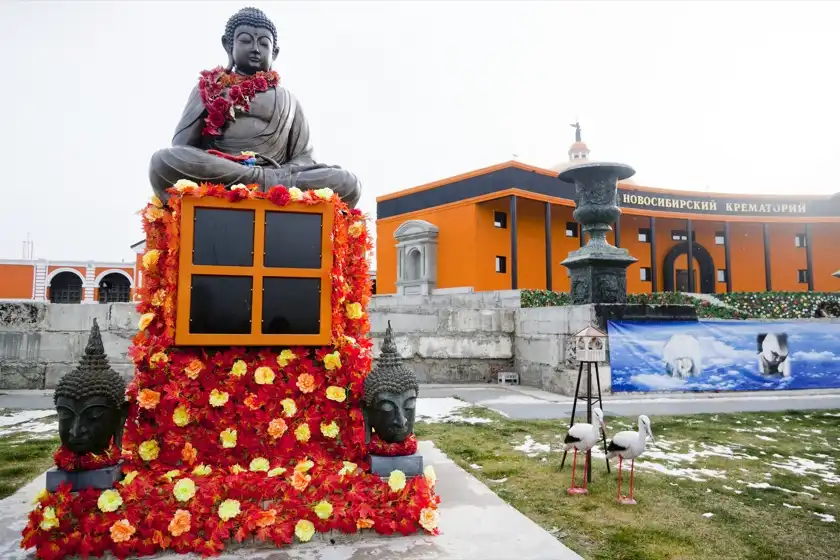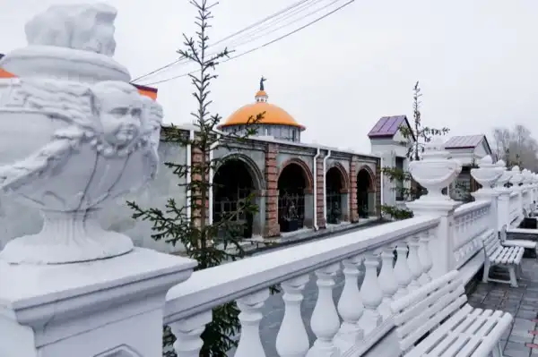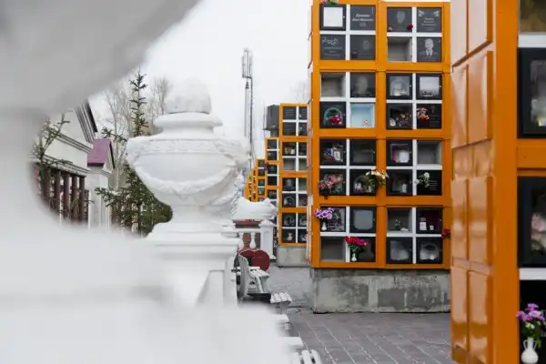 На заднем дворе находится аллея с боксами для хранения емкостей с прахом. Бокс можно как угодно оформить и поставить туда что угодно