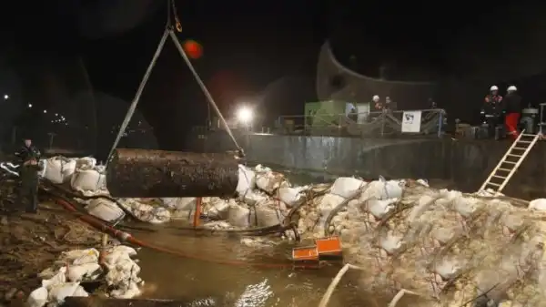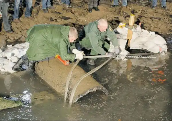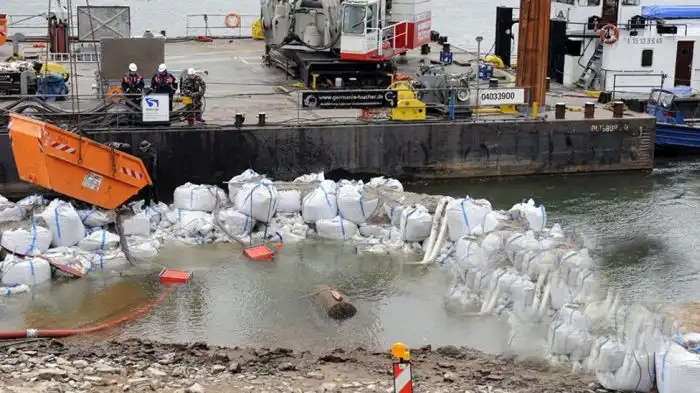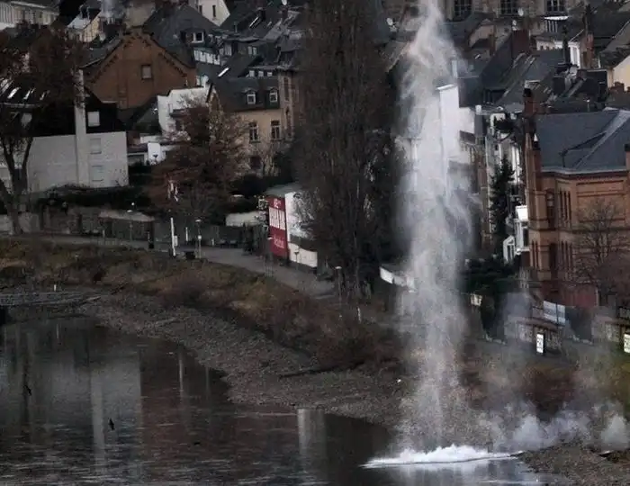 Одна бомба весит 1.8 тонн, ее сбросила британская авиация в русло реки Рейн, а вторая немного меньше.