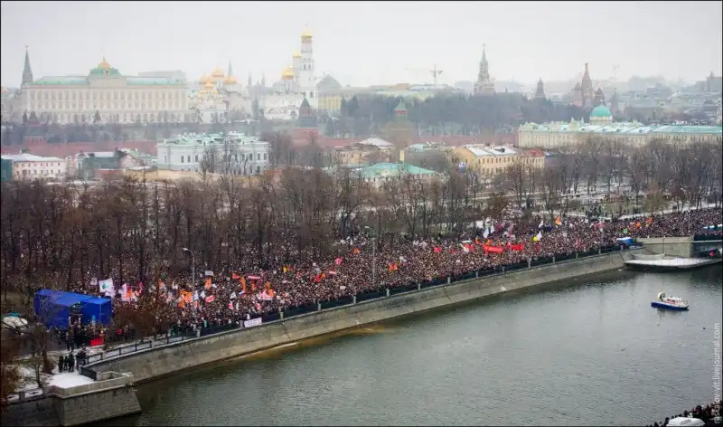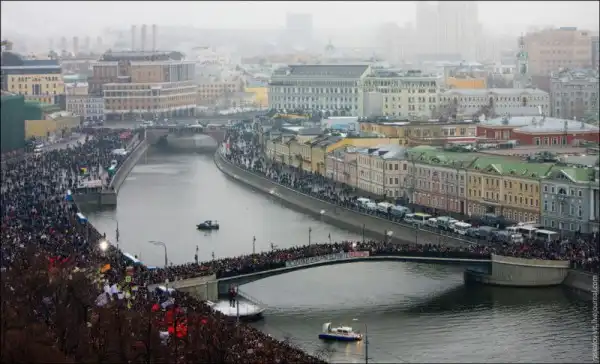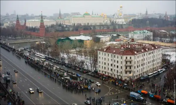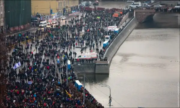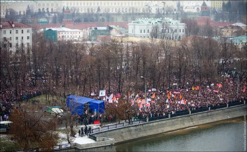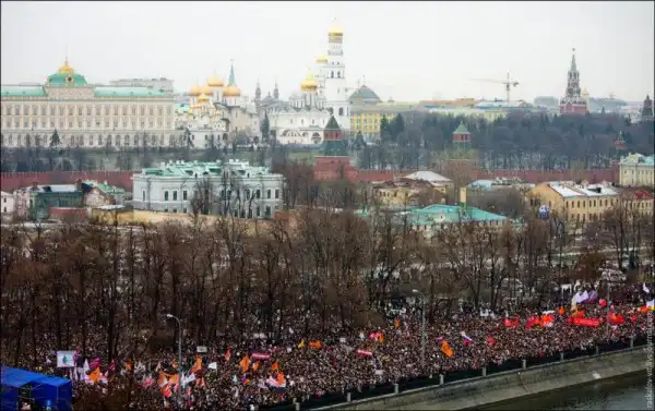 Московские власти согласовали общегражданский митинг численностью до 30 000 человек на Болотной площади, с 14:00 до 18:00. В итоге на площади собралось около 50 000 человек. Как это смотрелось сверху можете посмотреть в посте.