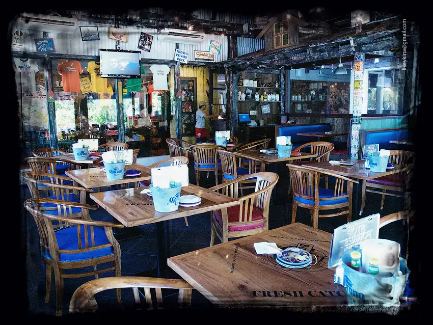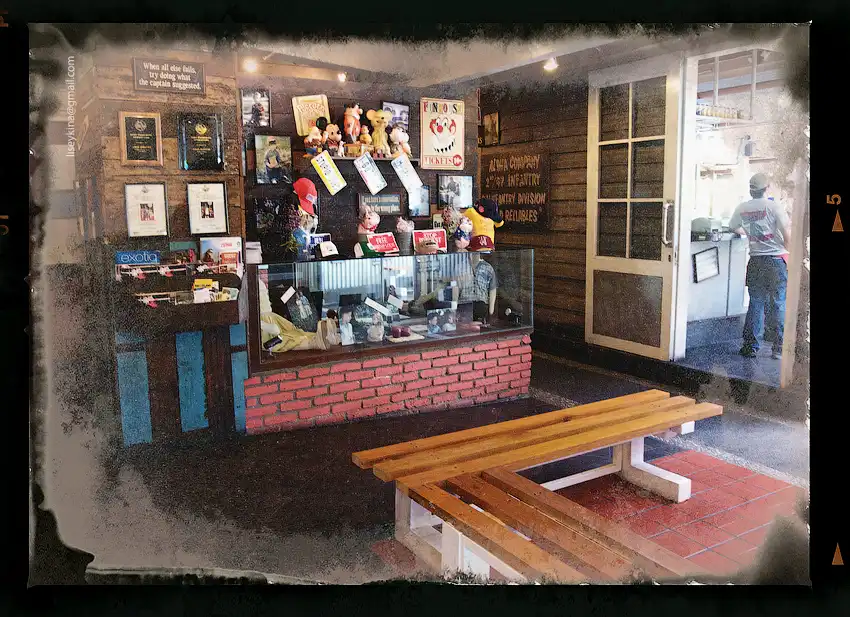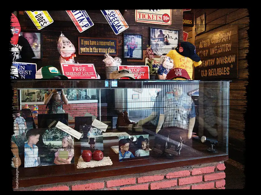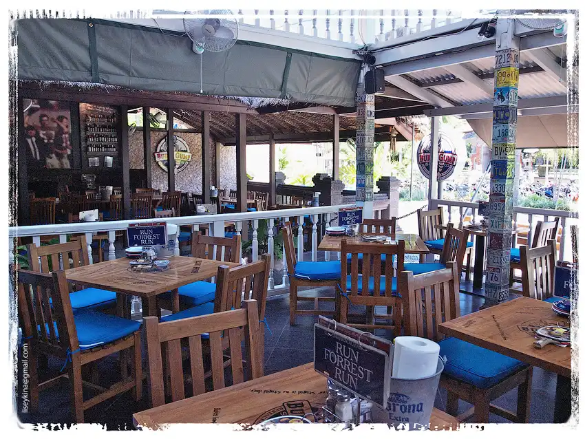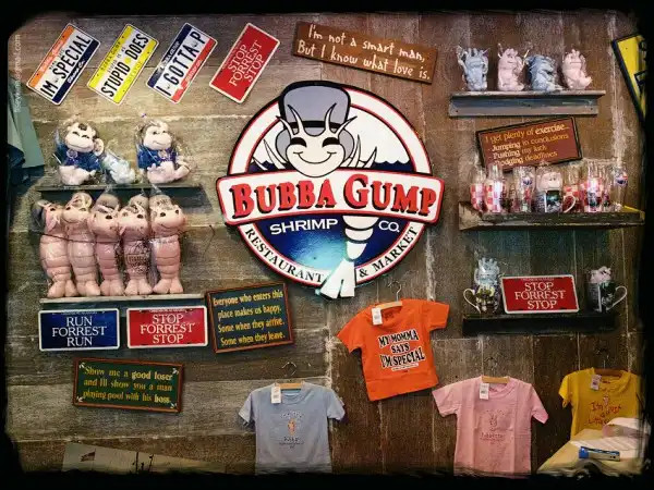 Если вы думаете, что история Форреста Гампа закончилась одним только фильмом, то вы глубоко ошибаетесь. Оказывается, заветная мечта Буббы о своём собственном ресторане стала реальностью!Bubba Gump Shrimp Co. - сеть ресторанов фаст-фуда, созданная в американском штате Калифорния и распространившаяся по самым удалённым уголкам земного шара. Цены здесь, конечно, кусаются (правда по местным меркам, с московскими их сравнивать не стоит). Ведерко из 500г изумительно вкусных вареных креветок с чесночным соусом стоит около 16 долларов. Но помимо креветок, составляющих большую часть меню, здесь можно отведать и блюда местной кухни. Кроме того, здесь делают отличные коктейли. Есть даже коктейль, распитие которого сопровождается прыгающими и танцующими официантками.Интерьер ресторана выполнен в американском стиле - на стенах и стойках можно увидеть прибитые американские автомобильные номера, а также множество предметов, ассоциирующихся с Форрестом Гампом и Америкой. Под потолком можно увидеть даже игрушечный Катерпиллар! А на больших ЖК телевизорах постоянно крутятся видеофрагменты из фильма про Форреста. Изрядно покушав и купив несколько сувениров (хотите плюшевую креветку?) в магазине, находящемся тут же, можно выйти на улицу сфотографироваться с ботинками Форреста :)Вообще здесь всё продумано до мелочей - даже в туалете есть на выбор сушилка для рук или бумажные полотенца. А на каждом столике есть перекидные таблички синего и красного цвета («Run Forrest, run» или «Stop Forrest, Stop»). Изначально перекинута синяя табличка, означающая, что вам ничего не нужно. Но стоит перекинуть поверх нее красную, как официанты моментально (они реагируют на ее звук!) начинают суетиться и оказываются возле вашего столика.