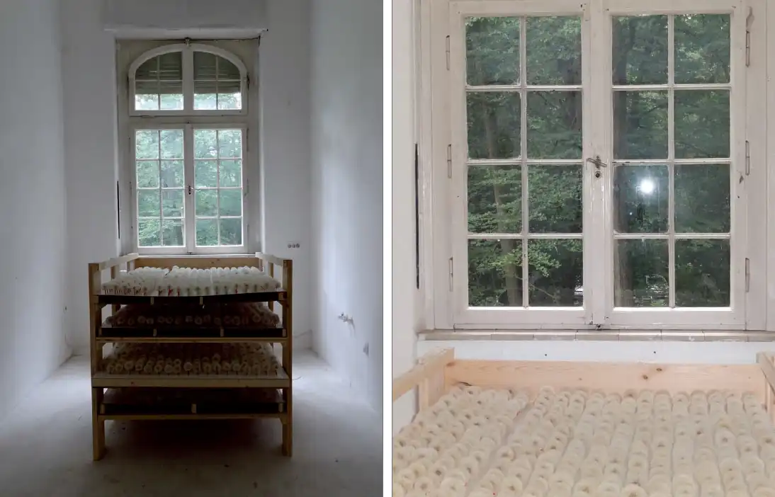 Для того чтобы зафиксировать и транспортирвать эти хрупкие растения, она обработала их аэрозольным клеем. Затем стебли вставила в защитные трубки, после чего одуванчики поместили в специальную конструкцию для перевозки.
