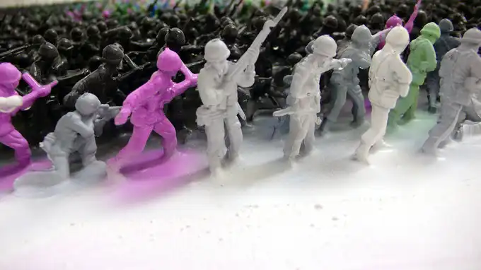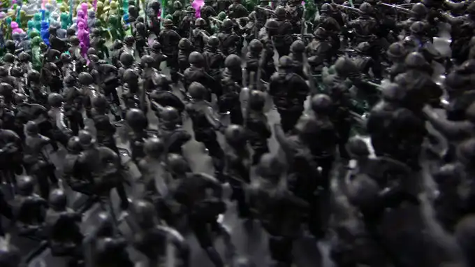 5500 игрушечных солдатиков понадобилось Джо Блеку (Joe Black) чтобы сделать портрет юного китайского солдата. Картина была названа - Made in China, которая является копией обложки журнала LIFE, январского номера 1938 г. Картина напоминает об участии детей в войне между Японией и Китаем (1937 - 1945). Ирония заключается еще в том, что солдатики изготовлены в Китае.