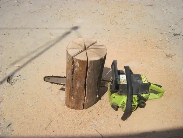 Чурку не нужно пропиливать да самого низа.Достаточно наполовину или на две трети.