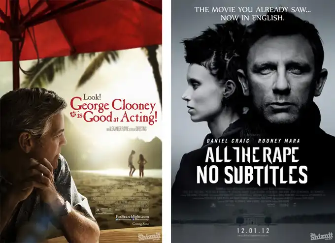 Английский сайт о кино theshiznit.co.uk представил серию "более правдивых" постеров фильмов-номинантов на премию Оскар 2012.