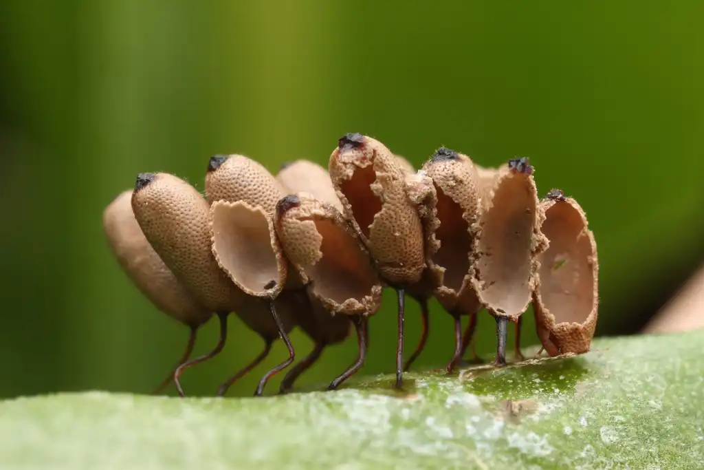 Златоглазки, наоборот, откладывают яйца на длинных тонких ножках, чтобы защитить от членистоногих хищников, питающихся яйцами.