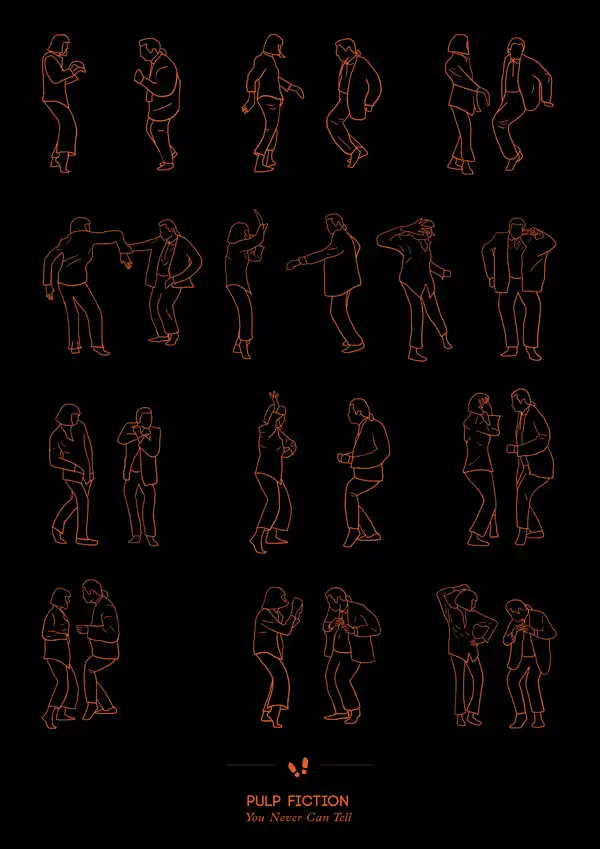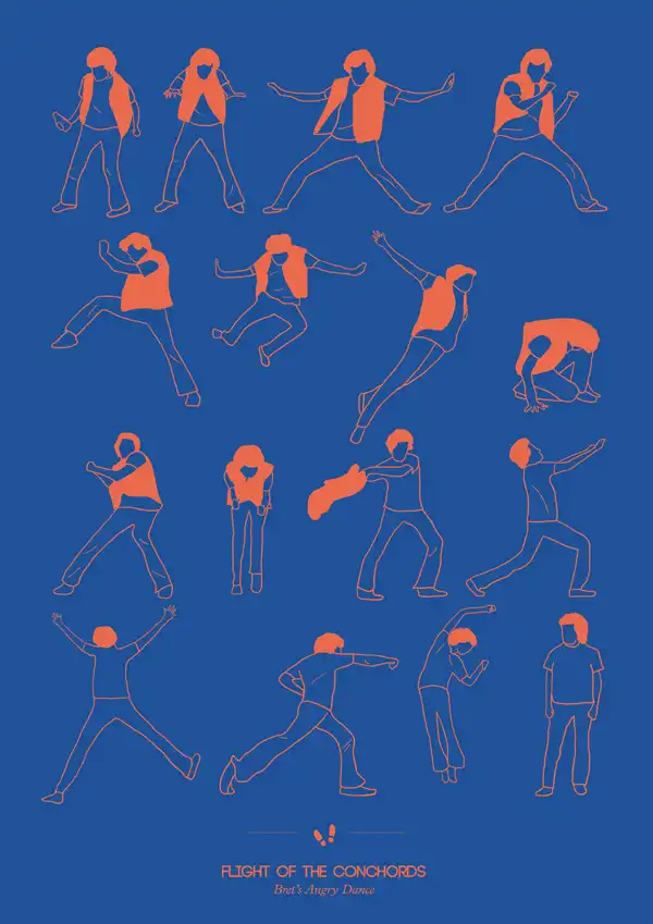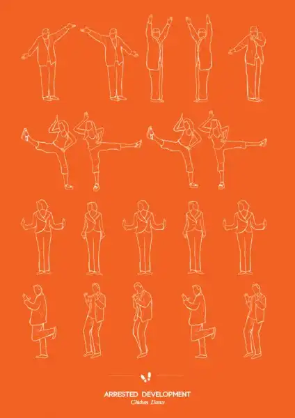 Найге выбрал самые остроумные танцы, которые известны по кинофильмам и телесериалам и нарисовал инструкции, как их танцевать шаг-за-шагом поза-за-позой. Получилась серия забавных постеров.