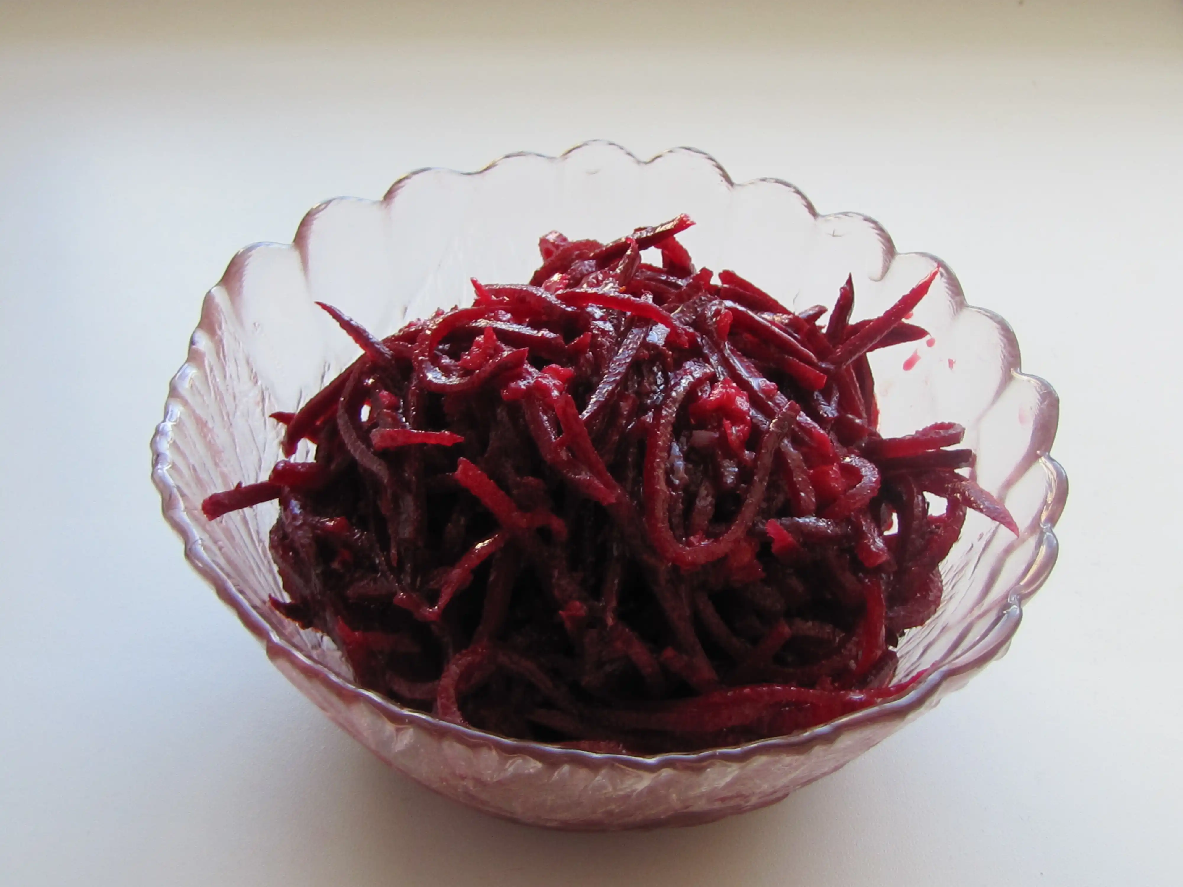 Сразу стоит оговориться, что данный салат можно сделать и из моркови. Разницы в технологии нет никакой, так что далее везде по тексту вместо свекла можно читать морковь. Привожу приготовление свекольного, по двум причинам: