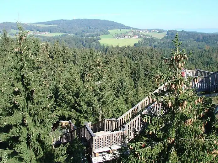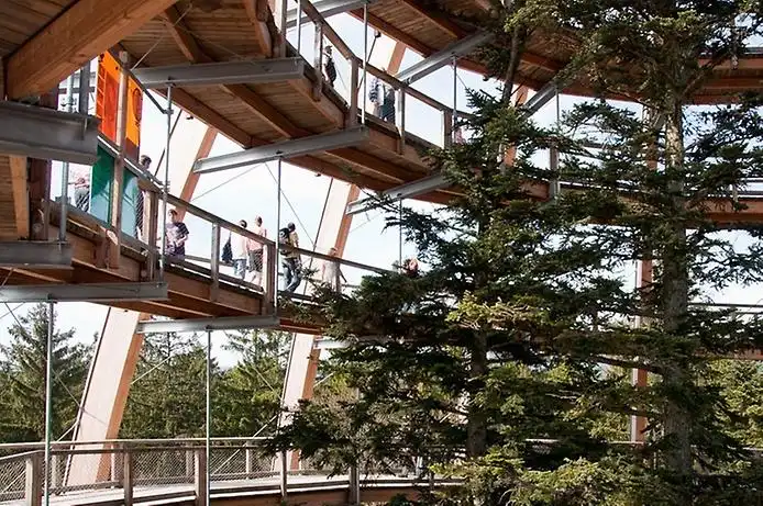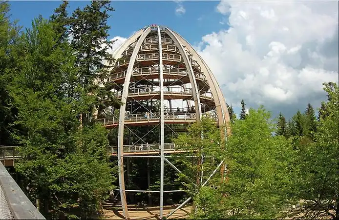 На вершину купола ведет винтовая лестница, состоящая из 360 платформ-ступеней. На верху находится смотровая площадка, откуда открывается захватывающий вид на окружающие ландшафты. При ясной погоде отсюда можно полюбоваться даже горными хребтами Альпийских гор. Эта удивительная тропа — часть самого большого в Европе природного заповедника, Баварского лесного Национального парка в Германии