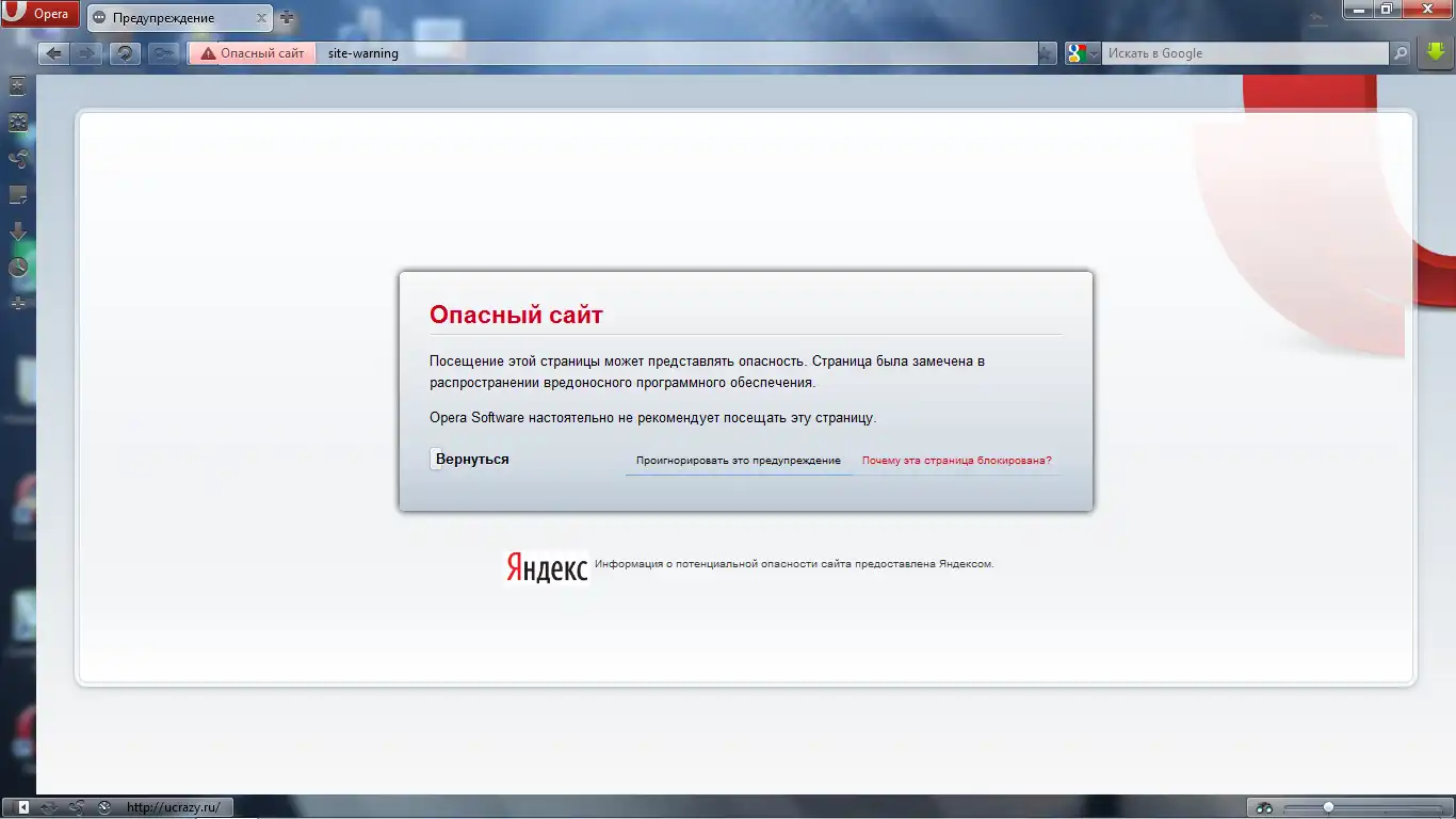 Многие посетители негодуют, по какой причине Яндекс ругается на uCrazy.ru и говорит о том что наш сайт является потенциально опасным.
