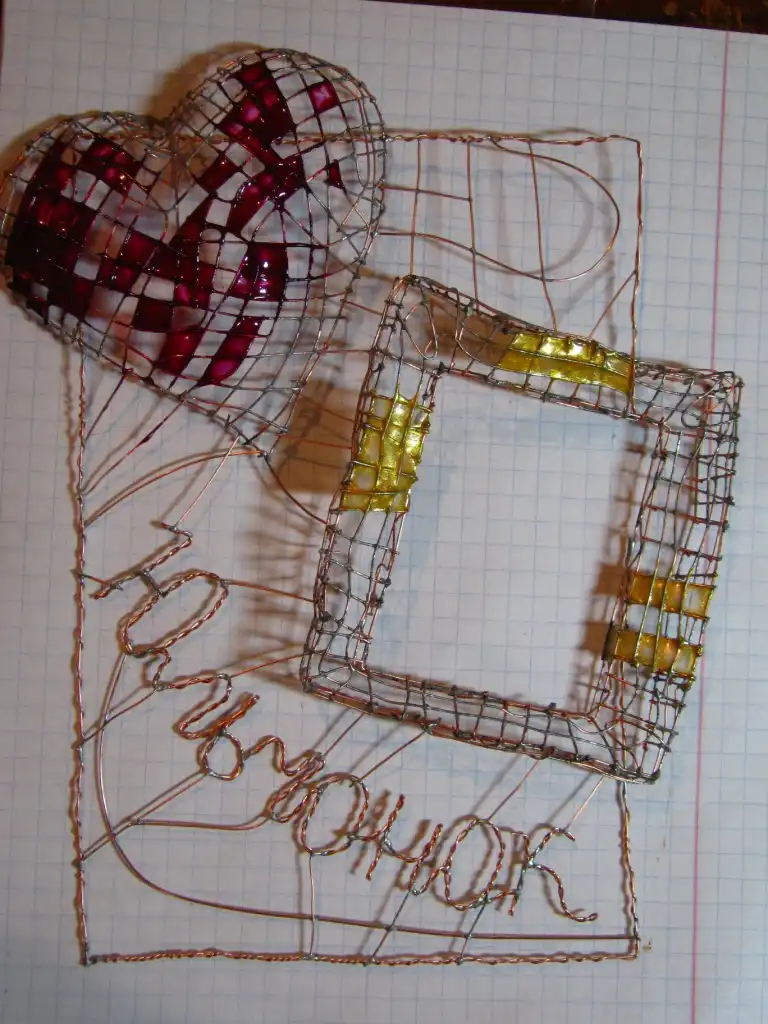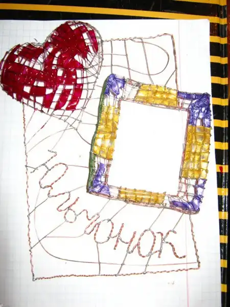 Открытка из медной проволоки и лака для ногтей!!!(все очень просто)в рамочку потом успешна была вставленна фотография