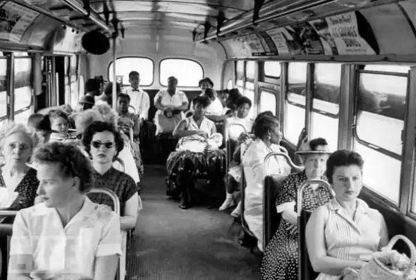 Даже если в автобусе не было белых пассажиров, а негров набивалось много, им не разрешалось садиться на первые четыре места. Но и это было еще не все. Если все места, предназначенные для белых, уже были ими заняты, а в автобус вошли новые белые пассажиры, негры, сидящие на нерезервированных местах, находящихся позади мест, предназначенных для белых, должны были встать и уступить им место. Если негр отказывался это сделать, его арестовывали. В большинстве случаев негры подчинялись этому правилу без возражения, хотя время от времени встречались такие, которые отказывались подчиниться этому унижению. (Мартин Лютер Кинг)