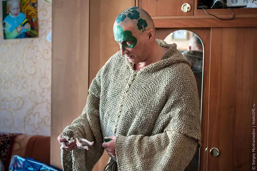 В своем доме Древарх (ДРЕВесный АРХангел) обычно ходит голым - чтобы быть ближе к природе, но для корреспондента НедоСМИ решил продемонстрировать свои различные рубища, оригинальные головные уборы и древарховское нижнее белье.