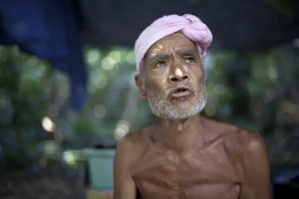 . Нагасаки моет посуду на пляже. Он надевает одежду только раз в неделю, когда отправляется в ближайшее поселение на лодке (в часе плавания отсюда), чтобы купить еды и питьевой воды на деньги, которые ему шлют родственники.