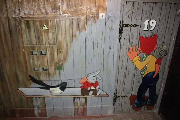 здорово конечно но по моему как то через чур ляписто,реально свою квартиру то не найдешь,всего должно быть в меру,а так конечно забавно,настроение поднимает,уж всяко лучше задристанных подъездов с бычками и обшарпанной штукатуркой)
