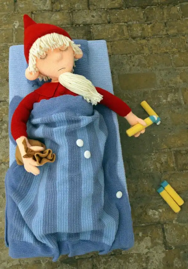 Вязаная скульптура «Песочный человек» Патрисия Уоллер, запечатлевшая самоубийство персонажа с помощью снотворного.