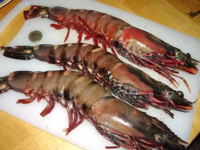 это чёрная тигровая креветка.весит около 650 грамм,в длину достигает 36 сантиметров