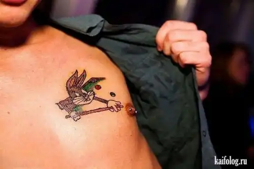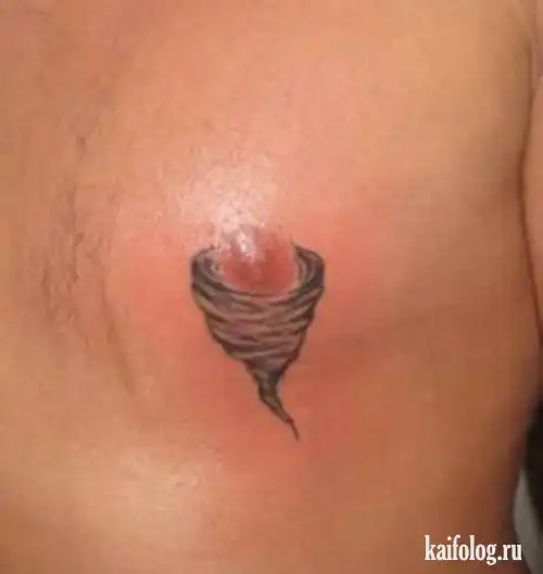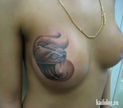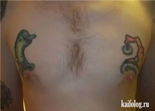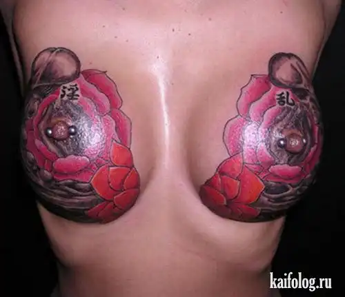 Очень оригинально наколотые быки, и ещё понравились цветы вокруг сосков и кельтский узор.