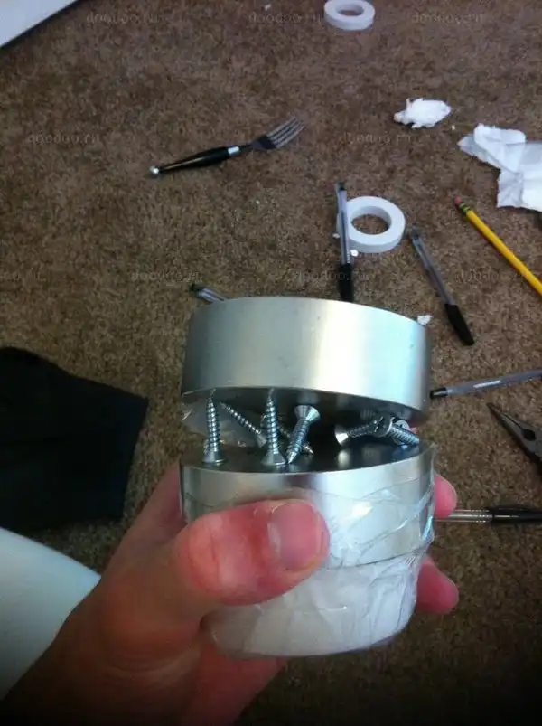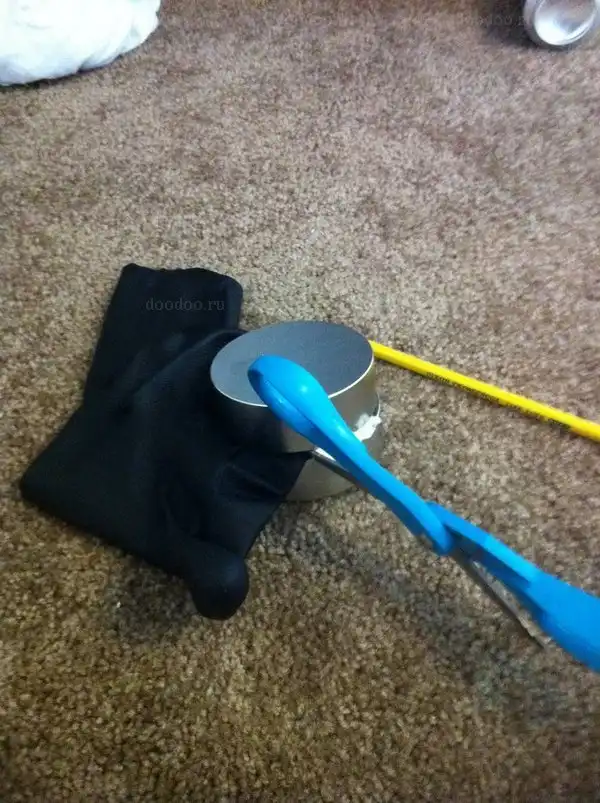 Используя имеющуюся щелочку, автор пытается разжать магниты, запихивая туда разные предметы...